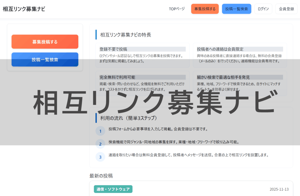 「相互リンク募集ナビ」なら簡単・安心して募集&検索できる
